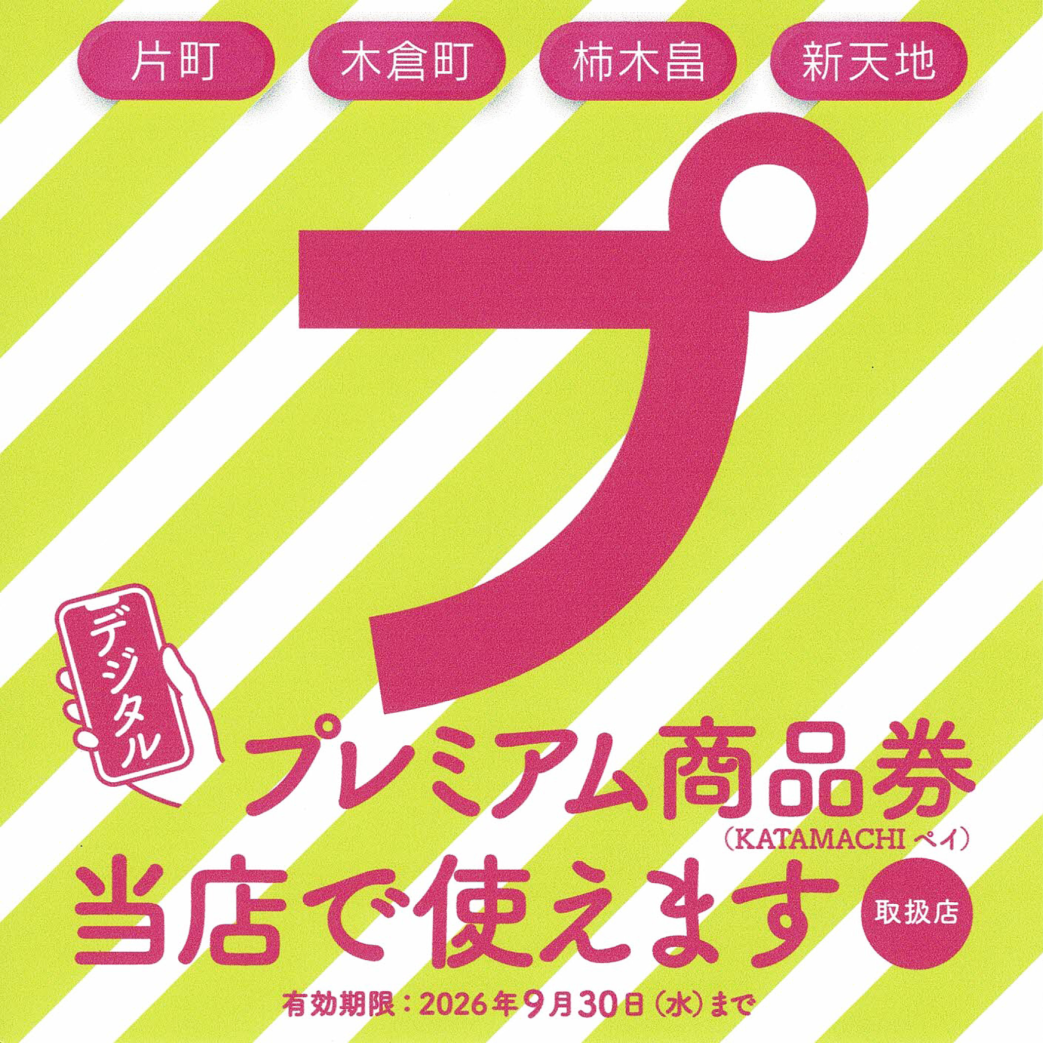 30%もお得な!!片町デジタルプレミアム商品券が使えます。(中央店のみ)